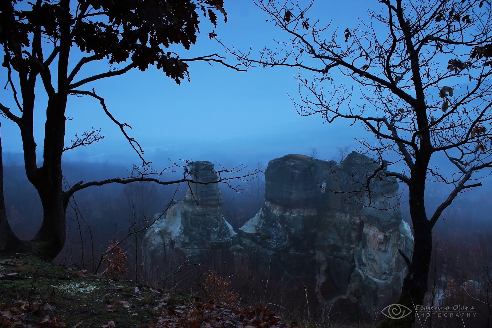 O zi cu ceață... se-nserează și rămân singură cu coloșii în Grădina Zmeilor. Mă încântă și mă-nfioară în același timp acest peisaj cu stânci ridicându-se din neant.